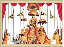 The most popular spireless temple of Jaipur dedicated to Lord Krishna. It is located in the central pavilion of the Jai Niwas Garden to the north of Chandra Mahal. The image of the patron deity-Govind Devji,originally installed in a temple of Vrindavan, was reinstalled here by Sawai Jai Singh II as his family deity.