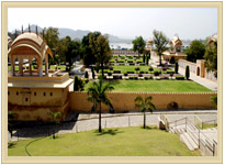 Complex of fine temples and gardens has been recently renovated to their pristine perfection. To the west of this road is the royal crematorium at Gaitore in a narrow valley with some spectacular cenotaphs of all the Jaipur rulers except Swai Ishwari Singh who was cremated outside the Jai Niwas Garden. Most imposing is the chattri of Sawai Jai Singh II with the intricate carvings and a graceful shape.